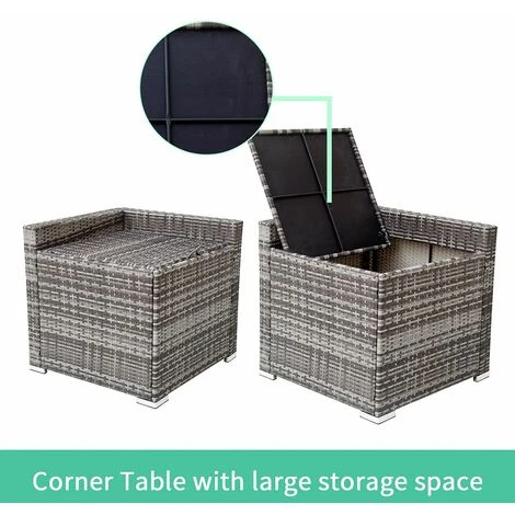 This lounge set with corner storage is the perfect collection, entertain family or host a garden party. Comfortably accommodates up to 4 guests, with plenty of room to sit, snooze and snore on plush 8cm seat cushions during late summer evenings. Classic woven, PE rattan frame combined with the stylish and contemporary cushions gives you a relaxing outdoor living room feel, all you’re missing is a book and a glass of wine on your matching coffee table