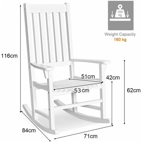 Imagine sitting on your rocking chair, drinking tea and enjoying the flowers in the garden. This chair is constructed of premium acacia wood, which is corrosion-resistant and durable. Designed with a contoured slatted seat, high back and wide armrests, the chair is comfortable and will relieve your fatigue. Thanks to its chic and elegant style, it is perfect for your balcony, terrace, backyard and more.