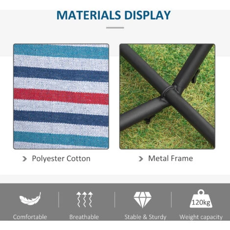 This Outsunny portable hammock with modern shape and multicolor stripe design, can be an ideal addition to your patio, yard or garden. No more searching for the perfect tree to hang your hammock, this free standing hammock supported by a freestanding frame. Adjustable height and portable design bring more convenience for using. With this hammock with frame, you can take comfortable naps on your porch, under a tree or by the pool for hours of relaxation. Specifications: