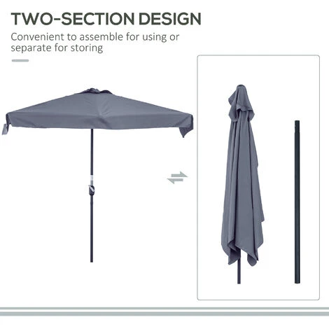 This balcony umbrella from Outsunny is perfect for those limited on space but want to enjoy the sun safely. The balcony sun umbrella will stand easily against flat walls without any gaps forming – ideal for balconies and small garden areas. The thick polyester canopy shielding heavy sun. This solar parasol is finished with a vent on the canopy, which allows air to pass through to prevent it overturning. Matching bases: Outsunny skus 84D-122, 84D-059, 84D-054 and 84D-050. Specifications: