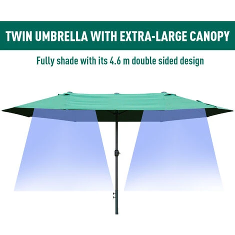 • Double-sided parasol design garden umbrella covering a 4.6M diameter area