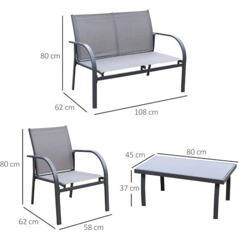 • Maximum weight loveseat: 220kg, chair: 120kg, table: 50kg