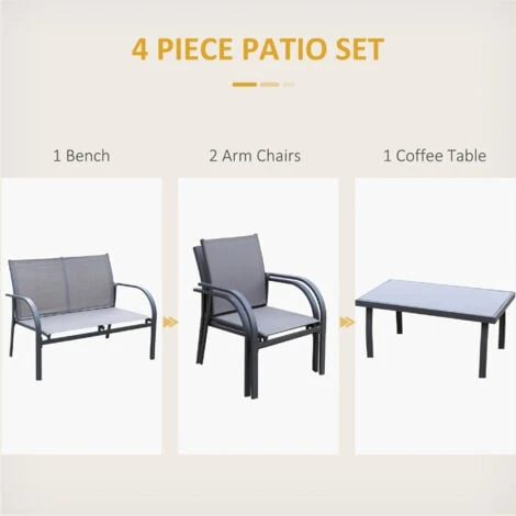 • Four-piece set, formed of a loveseat, two chairs and a matching table