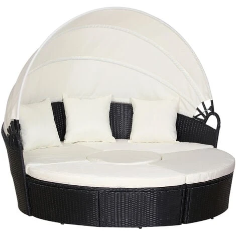 • Large outdoor bed formed of two quarter chairs, two quarter chairs with backs and a round table