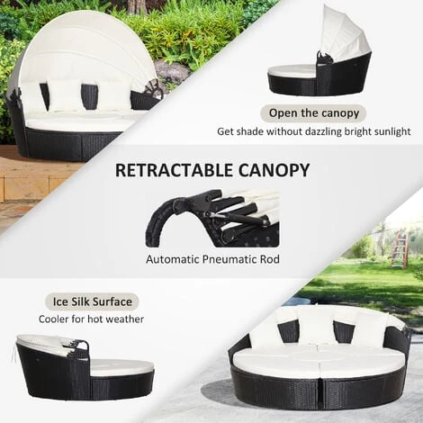 • Retractable overhead canopy, will block out sun and rain to allow you to rest peacefully