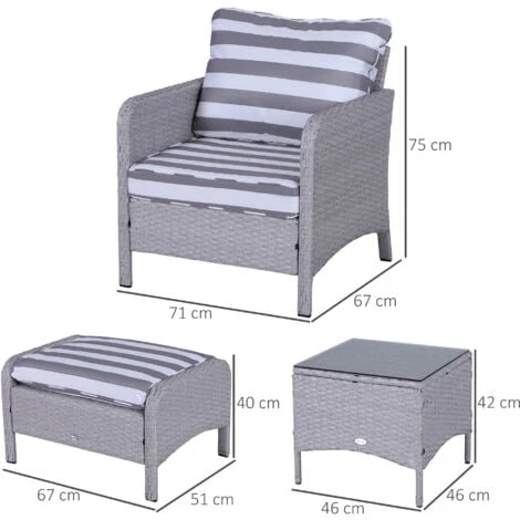 • Weight Capacity: 160kg (armchair), 70kg (ottoman), 30kg (table)