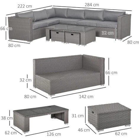 ● Colour: Mixed Grey rattan, Grey Fabric