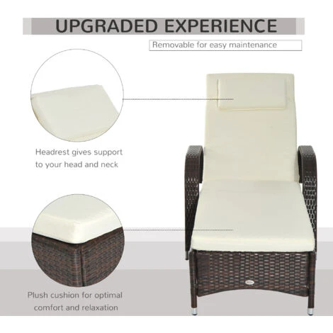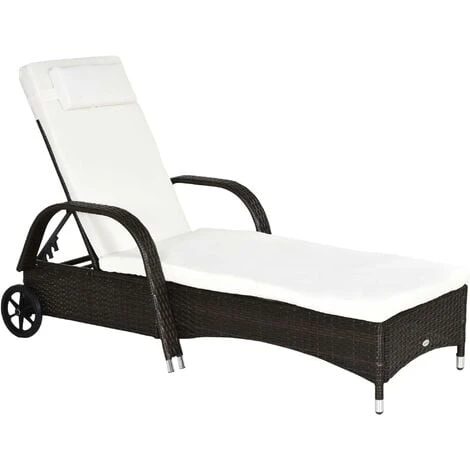 Soak up the sun with this Rattan Lounger from Outsunny. Made from weather-resistant PE wicker, with a strong steel frame underneath, the base is extremely sturdy and will provide you with many years of relaxation outside. On the top there is a thick foam cushion seat with a removable headrest for comfort and the back can be adjusted five different levels to suit your preferences. It is finished with two wheels to you can move it easily, whenever you wish.