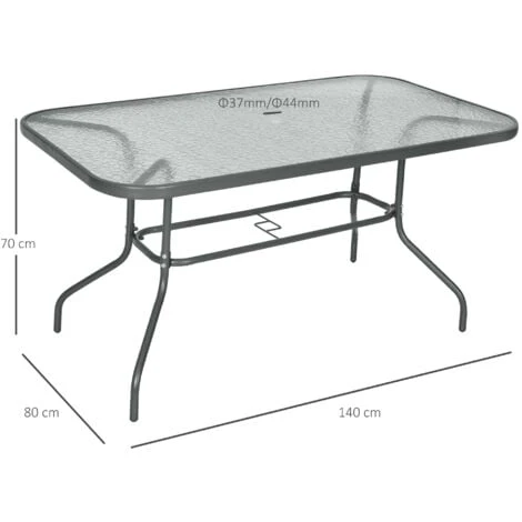 • Φ37mm / Φ44mm parasol hole in the middle of tabletop, keeps a sun umbrella upright and in place for shade and protection from direct sunlight