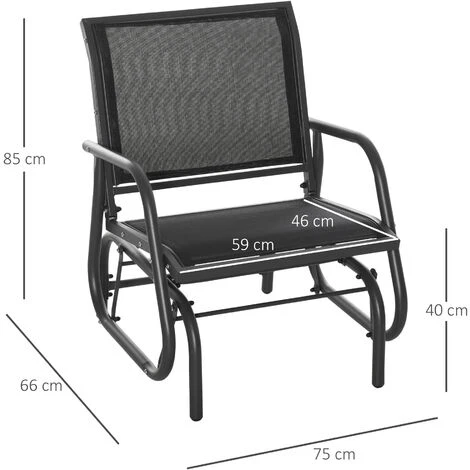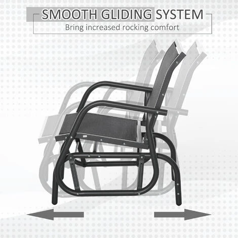 Glide the day away ever so smoothly with this garden rocking chair from Outsunny. Using steel for a structure which is durable and supports up to 120kg, our outdoor rocking chairs for adults are crafted into a unique swinging design, which moves back and forth gently – perfect for those relaxing afternoon naps. And the garden seat features a curved back, mid-rise armrests and breathable mesh fabric on the seat and back, allowing your skin to breathe easily. Finished with anti-slip feet. Specifications: