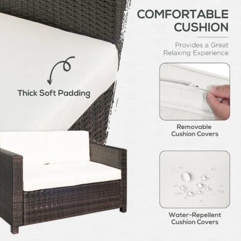 If you love to lounge outdoors, then this two-seater outdoor sofa from Outsunny is just the piece for you. Using a combination of a power coated and galvanised frame for the core, with plastic wicker on the outside, with extra thick cushions on the seats and back which are so comfortable. High on the back, with high armrests and longline seats for support, this sofa is finished with four feet to elevate and protect the main frame, as well as keeping it level and balanced on the floor.