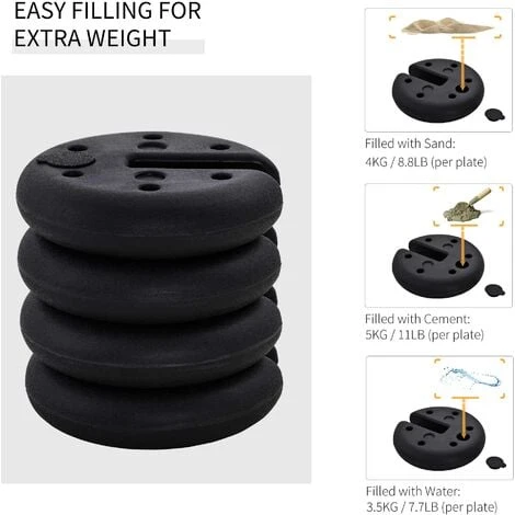 • Set of four disc shape weights for use with pop-up tents, gazebos and canopies