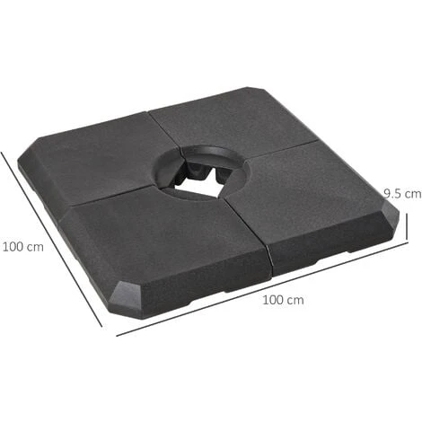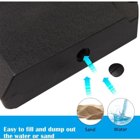 • Four-piece set, with all pieces slotting together on a cross base for parasols • Filling holes on each side, each piece fills to a maximum of 20kg water or 30kg – making it easy to store and carry when empty