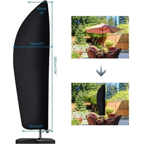 Parasol Cover Compatibility : 265 cm H x 40 cm W (top) / 70 cm W (middle) / 50 cm W (bottom). Check your parasol’s dimensions for proper fit. This garden parasol cover fits most cantilever parasols .