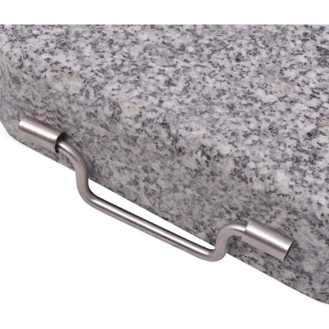 This parasol stand has a weight of 30 kg. It has a stainless steel pipe and handle. The stand itself is made of polished granite in combination with stainless steel. You can install wheels at the bottom and a stainless steel handle on the side for easy transportation. A parasol stand which is suitable for parasols with a diameter of up to 3 meters. With use of the side screws you can fix the parasol onto to parasol stand. Included in delivery are 2 adapters for Ø 38 / 48 mm parasol pole..
