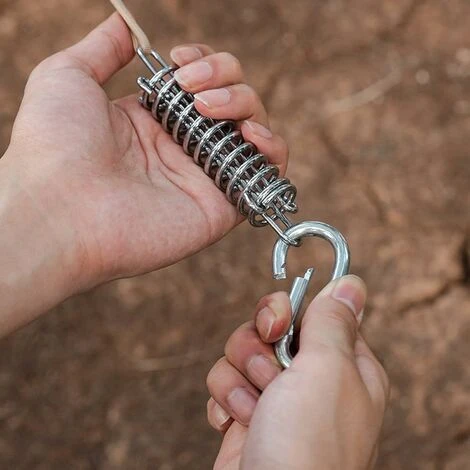 [Camping Accessories] The tension spring is suitable for use on the beach and in strong wind conditions. When a strong wind comes in, the spring hook can dampen the wind and prevent the wind from damaging the tent.