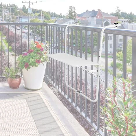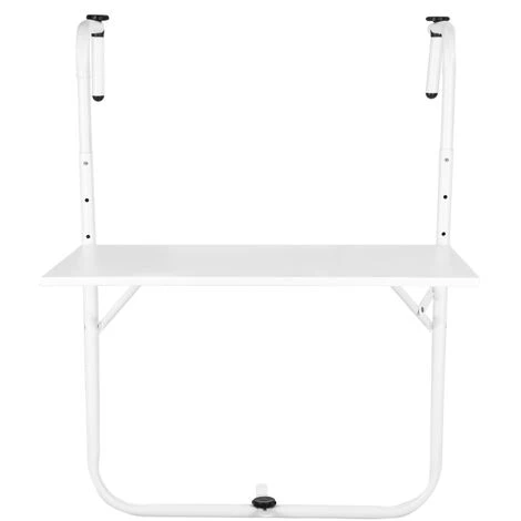 - Folding table for exteriors and interiors, 60 x 40 cm white, ideal for all types of balconies, terraces and railings with a maximum thickness of 13 cm.
