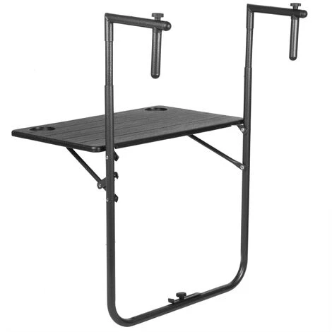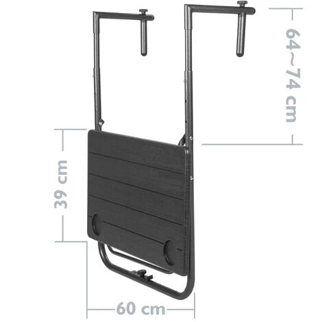 - Rectangular adjustable table of 60 x 36 cm black color, ideal for all types of balconies, terraces and railings with a maximum thickness of 13 cm.