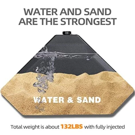 [High Weight Capacity] Water and sand can both be injected, the total weight is about 60 KG with fully injected, please add a sandbag to the base to increase the weight of the base, so your patio parasol won’t tip over in heavy winds