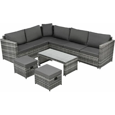 This 8-Seater Rattan Garden Furniture Set include 1 Corner Sofa, 2 Stools and 1 Coffee Table, it is perfect for any occasion – family dinner party or friend’s party, you can enjoy the great weather and great time with your whole family or your valued friends and guests. Just have fun together!