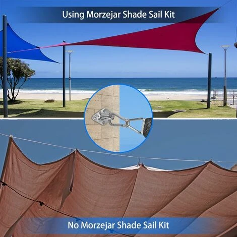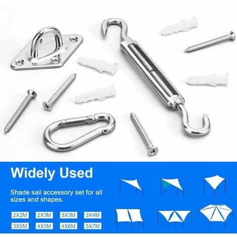 - High capacity; Loading: UneedMe shade sail hardware kit is very resistant to bad weather and strong wind, to prevent your shade sail from being whipped around. by a fast wind or being tossed around. by difficult weather conditions. Perfect for most types of waterproof shade sail to hang your awning securely. and easily