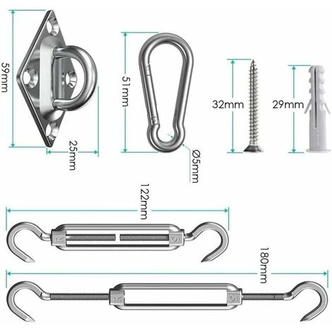 - High Quality Shade Sail Fixing Kit: Made of high quality M5 304 stainless steel, durable and rust resistant. Especially suitable for outdoor use in the garden.