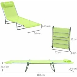 Outsunny Adjustable Sun Bed Garden Lounger Recliner Relaxing Camping Green