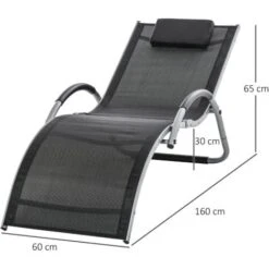 Outsunny Rocking Chair Sun Lounger Garden Seat High Back Texteline Black