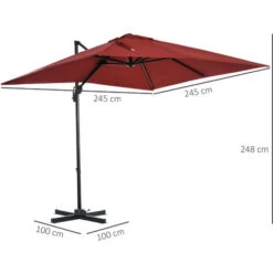 Outsunny Square Cantilever Roma Parasol 360° Rotation W/ Hand Crank Wine Red