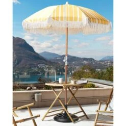 Retro Garden Market Parasol Outdoor Umbrella Beech Wood Pole Yellow And White Mondello