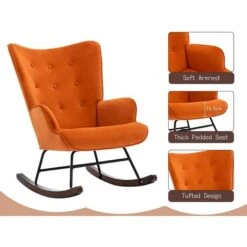 Velvet Rocking Chair Wingback Armchair For Living Room, Orange