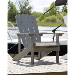 Outdoor Lounger Chair Dark Grey Plastic Wood For Patio Yard Adirondack