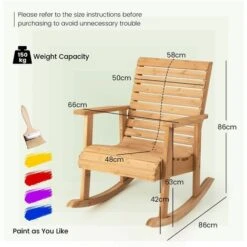 Outdoor Fir Wood Rocking Chair Porch Rocker Chair High Backrest Patio Rock Chair