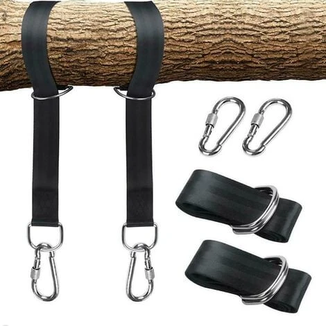 Made of high-grade stainless steel rings and carabiners., very strong and safe. Each strap holds up to 120 kg. Our popular and affordable hammock hanging kit is designed to be strong and safe.