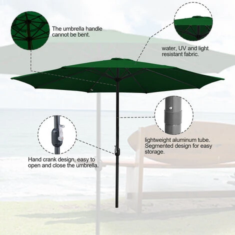 – 350cm free floating umbrella with 8 structures included hand crank for easy opening.