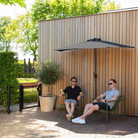 - The half-round parasol is perfect for balconies, patios, terraces or small gardens. Thanks to its half-round construction, the parasol can be placed directly against the wall.