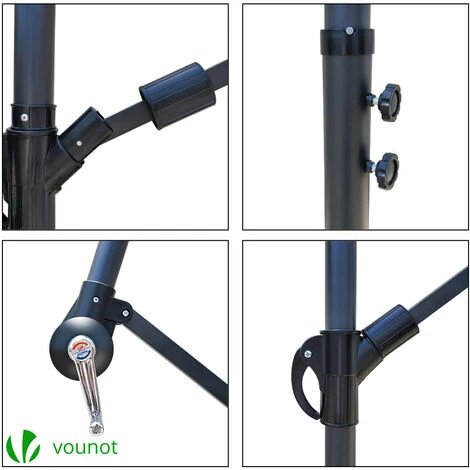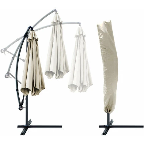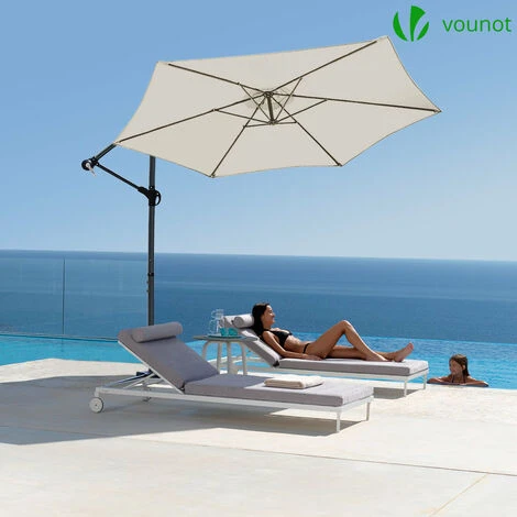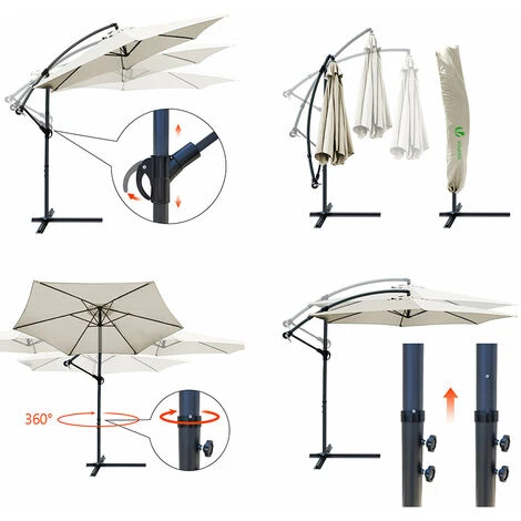 VOUNOT 3m Cantilever Garden Parasol, Banana Patio Umbrella With Crank Handle And Tilt, Beige