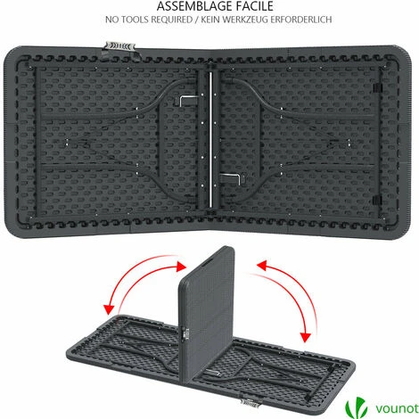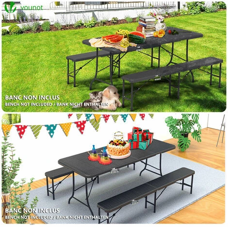 VOUNOT Folding Picnic Table Portable Party Trestle Table For BBQ Camping Indoor Outdoor, Black