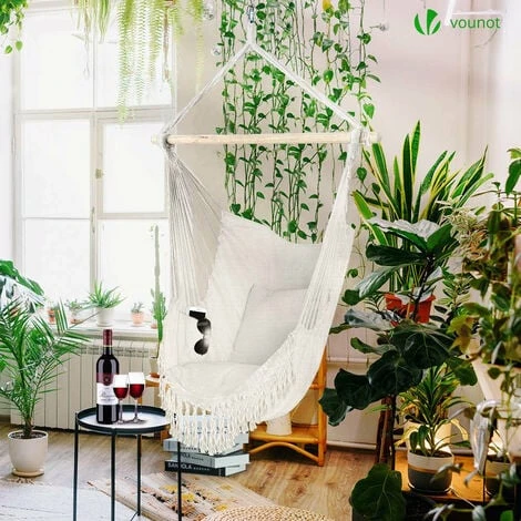 VOUNOT Hanging Hammock Chair with Cushions, Macrame Hammock Swing Chair for Garden, Bedroom, Patio, 265LBS Capacity, Beige