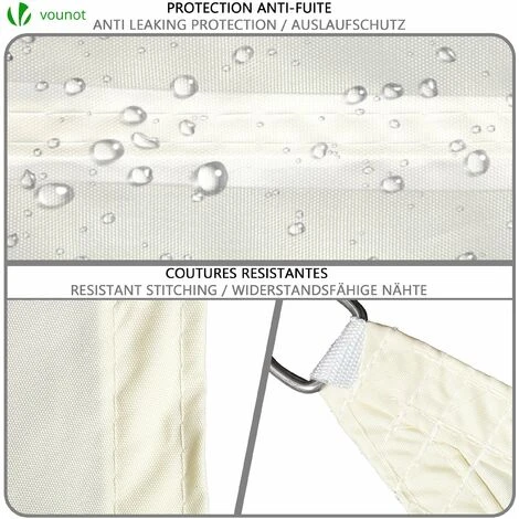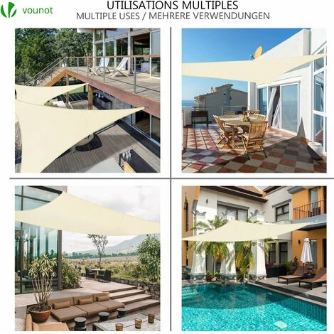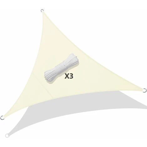 VOUNOT Sun Shade Sail Waterproof Triangle Sail Canopy With Mounting Ropes 3x3x3m, Beige
