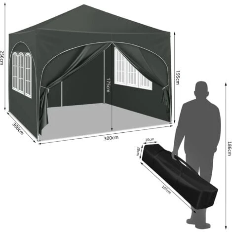 | About this item: 🌞STURDY CONSTRUCTION: The frame of the WOLTU folding gazebo is made of metal with a powder-coated finish for rust resistance and durability. With 8 ground pegs and 4 ropes of 2.8m each. its stability and safety are further increased 🌞UV-PROTECTED &. WATERPROOF: The roof is made of 210D silver coated Oxford fabric that is rainproof and blocks 98% of UV rays with a UV protection factor of 50+. providing reliable shelter for your outdoor activities 🌞EASY TO USE: Thanks to its pop-up mechanism. this outdoor gazebo is easy to use. It can be adjusted in 3 positions (250-254-258cm) and has 4 removable sides with hook-and-loop fasteners. 2 with zips and 2 with windows. for convenient use 🌞EASY TO STORE AND CARRY: When not in use. the pop-up gazebo can be folded into a compact size to fit into the included storage bag. saving space and making it easy to store or carry around 🌞A GOOD HELPER FOR ACTIVITIES: The arched roof edges are exquisitely beautiful. The 3x3m garden gazebo can accommodate 6-10 people. ideal for family gatherings. picnics. sports events. flea markets. barbecues. beach events and more | |